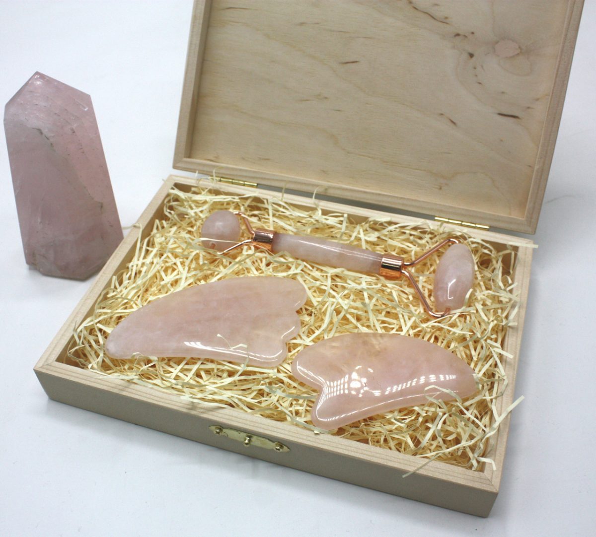 Масажний набір гуаша з рожевого кварцу.