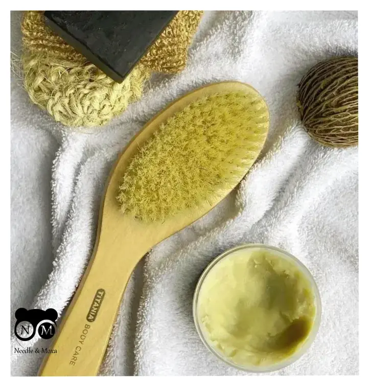 Деревянная щетка для сухого массажа с натуральным ворсом Titania